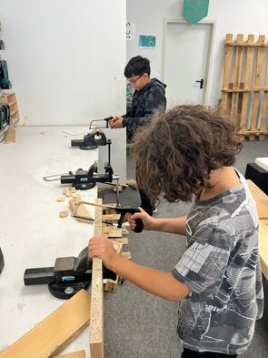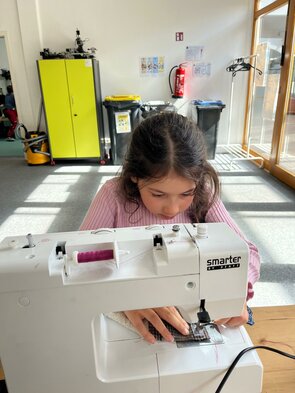 Dort können die Kinder mit viel Freude ausprobieren, tüfteln und gestalten. Sie drehen eigene kleine Filme mit dem iPad, programmieren Namensschilder oder Roboter, nähen an der Nähmaschine, löten oder arbeiten handwerklich mit Holz und Werkzeug. Auch moderne Technologien wie der Lasercutter oder der 3D-Drucker stehen ihnen zur Verfügung und eröffnen spannende neue Erfahrungen. Schritt für Schritt entstehen dabei ganz individuelle Ergebnisse, auf die die Kinder mit Recht stolz sein können.