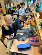 Eine Gruppe lernte viel über Bienen, stellte Brotbeutel aus Bienenwachs her und pflanzte Blumenzwiebeln in den Schulgarten ein, die als Bienenfutter für den Frühling dienen werden.