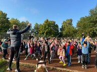 Jede Klassenstufe traf sich zu einer vorgegebenen Zeit im Stadion, um dort auf Musik die geforderte Zeit anzugehen. Dadurch war die Motivation bei allen Schülern und Schülerinnen riesengroß und ganz viele Kinder konnten die angestrebte Zeit durchlaufen.